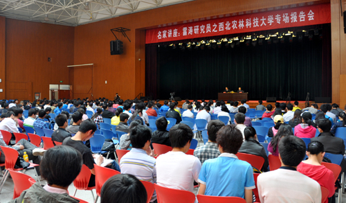 报告会开始,雷涛就回忆起自己1964年和父亲一起到西北农学院参观的情景。雷涛颇有感触地说:“小时候来到西农,五台山的地形和家乡很像,感到非常亲切,高高的三号楼激发起了自己好好读书的理想。六年之后的1970年,自己又来到西农,正值文革劫乱,图书馆门窗破碎,自己从散落一地的书籍中捡起了两本书。今天,阳春三月,再次来到西农,和莘莘学子交流,旧事一一浮现,心中不觉感慨万千。”