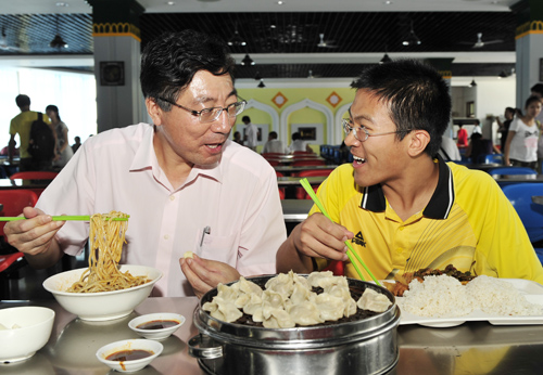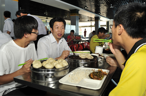 孙其信校长在学生食堂了解饭菜价格和品种供应情况