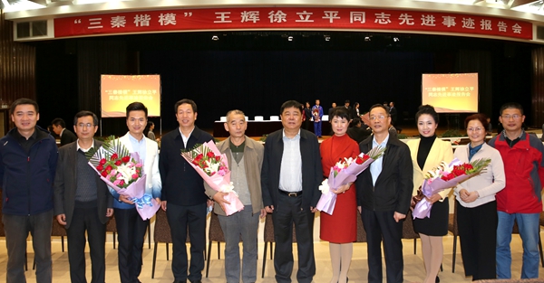 10月14日下午,我校参与组建的“三秦楷模”王辉、徐立平先进事迹报告团首场报告会在西安曲江宾馆隆重举行。省委宣传部副部长李伟主持报告会并讲话,校党委副书记徐养福、杨凌示范区党工委副书记郭建树等出席报告会。省直机关干部、国有企业一线产业工人以及高校优秀师生代表750多人聆听了报告。