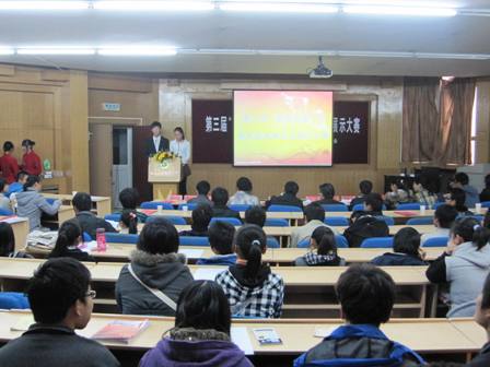 各参赛代表队以讲解研究课题为主,所选的课题同学习生活有关,具有较强的现实意义。其中,营销101班代表队进行了杨凌旅游业现状及发展满意度调查,深入到农家乐、博览园、水运中心和泰陵等杨凌代表性旅游项目进行实地调查,以客流量和满意度为切入点,了解了杨凌旅游业的发展现状并提出合理化建议。工商101班代表队则另辟蹊径,着眼于当代大学生的亲情消费,以问卷调查的形式,多角度地反馈了当代大学生对亲情消费的重视程度,并呼吁同学们对父母心怀感恩。