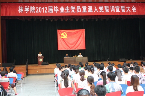 为进一步加强毕业生党员的党性教育,积极做好毕业生安全、文明离校工作,6月22日,林学院在南校区绣山活动中心举行2012届毕业生党员重温入党誓词宣誓大会。林学院党委书记魏安智出席大会并讲话。大会由学院党委副书记何明骏主持。