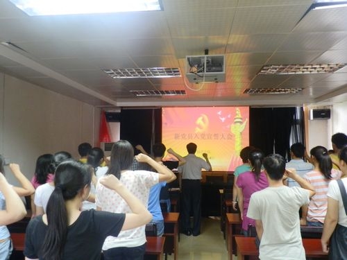 宣誓大会在雄壮的国歌声中拉开序幕。学院党委副书记李京春带领2012年新发展学生及教工党员面向党旗,庄严宣誓。学生党员胡玲玉代表新党员表明了态度和决心,表示会聆听党的教诲,好好学习,积极实践,勇于创新,乐于奉献,时刻以一名共产党员的标准要求自己,在同学中起榜样带头作用。