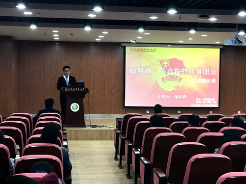 在理论课上,刘业兴老师强调:“共青团是党的助手,是团结教育青年的核心。共青团是中国共产党领导的先进青年的群众组织,是广大青年在实践中学习中国特色社会主义和共产主义的学校,是中国共产党的助手和后备军。共青团的两大作用是:带领青年在经济建设中发挥生力军和突击队作用、充分发挥党联系青年的桥梁和纽带作用。”引起了同学们的强烈的组织认同感和归属感,也激发了不少同学争取早日入党、向党组织靠拢的积极性。同时,刘业兴老师还为同学们进行了领导力培养方面的讲解,以毛主席的伟大革命故事为线索,深入浅出的告诉大家如何向革命伟人学习领导艺术,告诫大家在平时学习和生活当中要将理论和实践相结合,不放过任何一个可以锻炼自己的机会,这样才能提升自己的领导力。