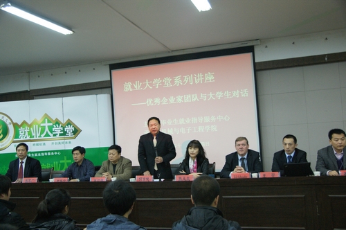 机电学院院长何东健教授首先致词,向优秀企业家的到来表示热烈的欢迎,并指出机电学院多年来一直本着传授学生系统、专业的知识,以培养学生过硬的专业技能为教学目的,为广大知名企业输送了一大批优秀人才,赢得了用人单位的一致好评。他还表示,机电学院将继续坚持优良的办学理念,争取培养出更多市场需要的全能型人才。机电学院党委书记张军厂希望同学们认真体会企业家宝贵的就业、创业经验,勤于思考,勤于实践。