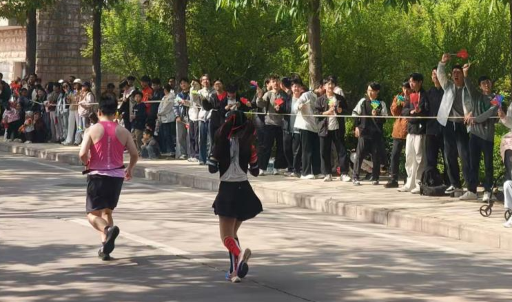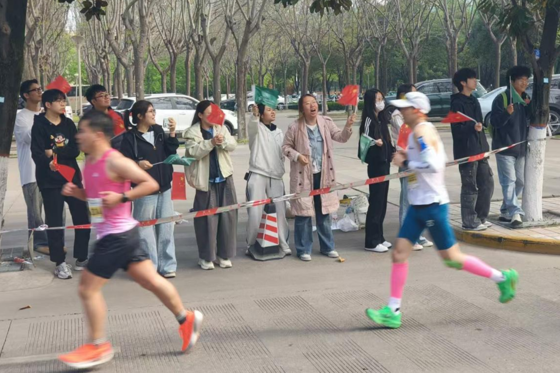 “能在学校里为这场盛会呐喊,感觉特别骄傲。”来自语言学院的大二学生张晨阳,嗓子虽已略带沙哑,手中的旗帜却挥舞得依旧有力。她表示,参与观赛不仅是一次志愿服务,更是一堂生动的青春实践课,“看着跑者们在镜头前坚持奔跑的样子,我们也在现场感受到了体育精神的力量。”阳光透过树叶的缝隙洒在年轻的笑脸上,与奔跑的身影相映成趣,勾勒出杨马赛道上最鲜活的青春底色。