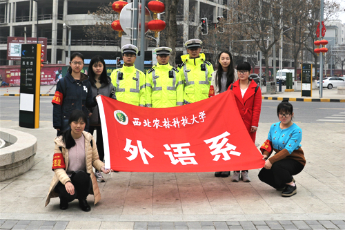 为响应校团委在全校团员青年中开展的“学习习近平总书记讲话,做合格共青团员”教育实践活动,发挥青年团员志愿服务的精神,契合“学雷锋月”主题精神,以及在市民中宣传普及交通法律法规。3月18日,外语系团工委社会实践部组织选派多名学生志愿者在杨凌示范区康乐路与西农路交叉口等多处易拥堵路段进行协勤服务。