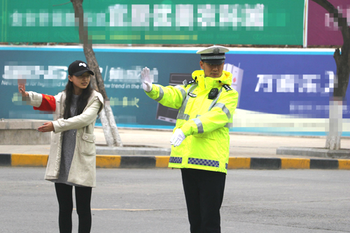 活动得到了杨凌示范区公安局交巡警支队二大队事故科的大力支持。活动开始前,志愿者们在接受了交警同志细致的岗前培训。培训之后,各位志愿者就带上印有“交通协管员”字样的袖章按照之前的分工走上各自的服务岗位,在西农路与康乐路十字路口东西南北每一个方向都有至少两名志愿者担任文明交通协管员,在进行文明交通劝导的同时呼吁广大市民积极响应“文明劝导,安全出行”的号召。对于每一个试图闯红灯或者其他违反交通规则的行为,志愿者们均会及时上前进行善意的提醒和劝导,绝大多数市民对于志愿者们的工作也都给予配合,有的还表达出了高度的赞赏和肯定。对于一些年迈的老人,志愿者们主动耐心地帮助其安全过马路,并为其讲解交通安全知识。“请您走人行道”,“现在还是红灯”,“请您等一下好吗?”“可以过马路了,请注意安全”……这样的声音一遍又一遍地回荡在西农路与康乐路交叉路口,为行走在路上的人们带来了安全的提醒和暖心的服务。