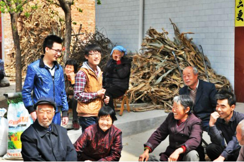 村主任助理常秀、封凡带领志愿者们走进曹沟村开展文艺下乡活动。他们巧妙地将雷锋精神的宣传内容融入到朗诵、小品等多种形式的表演之中,不仅丰富了村民们的文化生活,也使广大村民在欢声笑语、潜移默化中接受有关雷锋精神的内容。