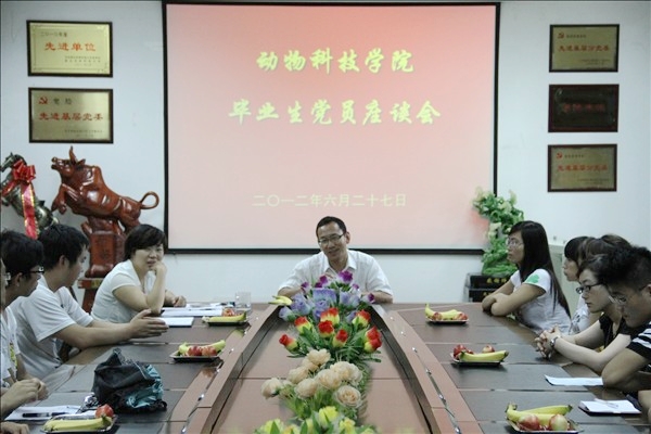 6月27日下午,动科学院在四号楼一层会议室召开2012届毕业生党员座谈会。学院党委书记闫祖书、党委副书记兼副院长王晓娟、专兼职辅导员及50多名毕业生党员代表参加了座谈会。