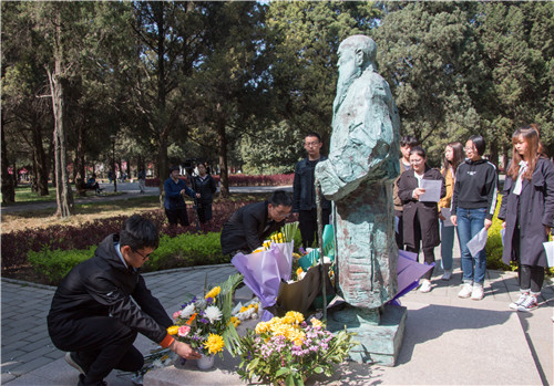 清明翠碧芳菲纵,嘉树更思当时人。4月5日上午9时许,在西北农林科技大学校园内,凤岗通讯社成员分别在五座西农先贤雕像前开展《他说》主题活动,通过追忆先辈事迹、诵读先辈名言的方式,向已故的名家大师表达后辈的缅怀与敬仰。