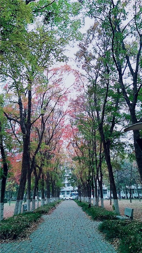 认得校园里的这条林荫小道吗?它就是北校区三号、五号教学楼和图书馆之间的三角枫路,多少次我们上学放学都要经过那里。