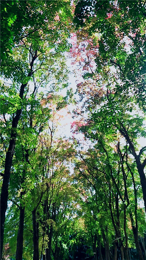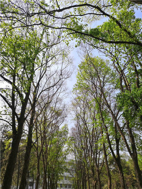 初春韶节,林荫小道上的树开始发芽,每一片小嫩芽泛着嫩绿,预示这新的生命。这时,走在林荫小道上会感到春意盎然,到处充满了生命的气息。