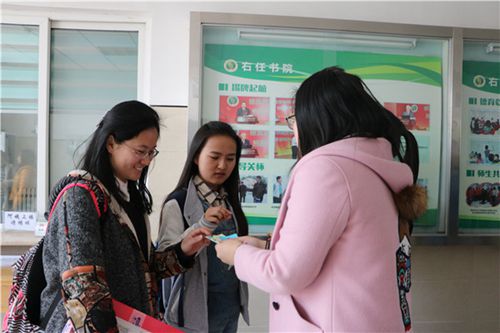 工作人员向女生分发男生的祝福纸条