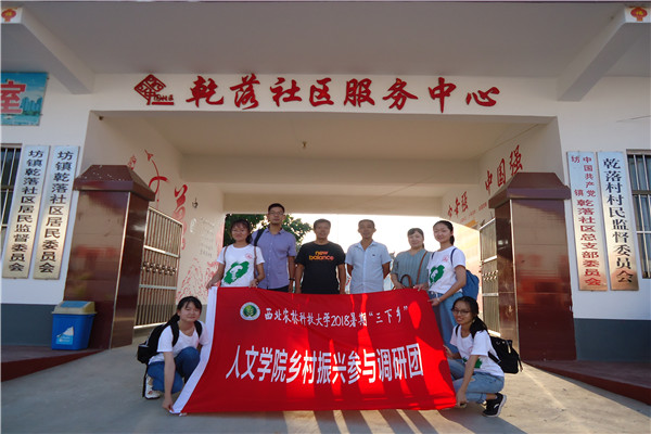 乾落社区位于渭南市合阳县坊镇,一座距西农有256公里的村庄,却处处刻上了西农无形的印记。道路两旁围墙上的涂鸦画作不少来自于学校的小七涂鸦社,韩书记也是学校2015年选派到这里作为第一书记开展定点扶贫工作的老师,上午访谈过的一位奶奶,把自己孙子和去年学校支教的同学的合照特地压在了玻璃茶几下,临告别时还指给我们看了看。
