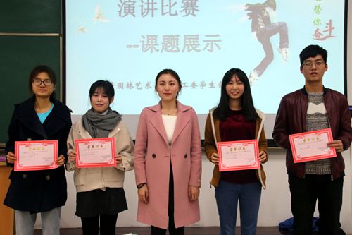 本次演讲比赛由风景园林艺术学院团工委学生会组织部承办,旨在锻炼学生口才,培养优秀演讲人才。比赛开始后,四位参赛选手以饱满的热情,昂扬的精神状态,给在场听众带来一次又一次精神上的洗礼,他们富有感染力的演讲打动了评委老师和在场观众,将现场气氛推向一个又一个高潮。经过精彩的角逐,刘聪同学凭借精彩而富有感情的演讲打动了四位评委,获得冠军。接下来,鲁玉老师对本次演讲比赛进行点评,主席赵天福学长为获奖选手颁发奖状。整场活动进行得有条不紊、欢乐和谐,最后在主持人温馨的祝福语中,此次演讲比赛圆满落下帷幕。