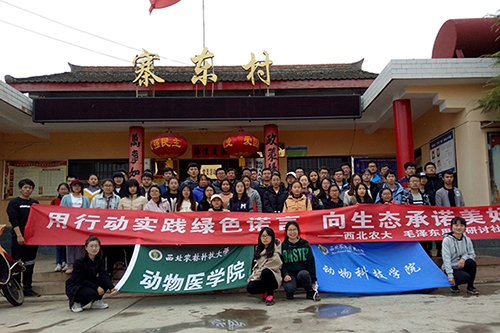 习近平主席在十九大报告中指出,坚持人与自然和谐共生。必须树立和践行绿水青山就是金山银山的理念,坚持节约资源和保护环境的基本国策。为响应主席号召,激发同学们建设绿色生态家园的热情,近日,动物科技学院社会实践部联合动物医学院社会实践部,毛泽东思想研讨社与动科新思想研习社,以及寨东村村主任助理共同组织两院同学在在寨东村开展了雷锋月系列活动之义务植树活动。