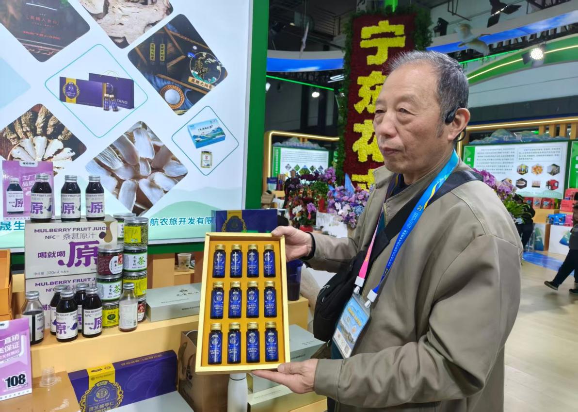 “这是我们最新开发的磷脂酸枣仁植物饮品,专门帮压力大、睡不好的人改善睡眠!”杨凌绿健食品科技有限公司的参展代表拿起新品包装,向驻足游客推介。除了这款助眠饮品,企业还带来了代理的桑葚原汁,主打健康养生。