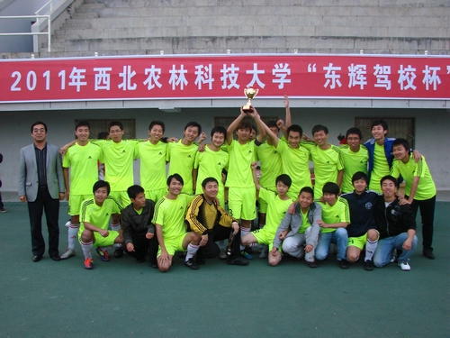 10月28日,“东辉驾校杯”西北农林科技大学足球联赛决赛在北校区田径运动场举行。生命学院男子足球队凭借顽强的意志和精湛的技术,以5比3战胜经管学院男子足球队,摘得桂冠。体育部主任王文博出席颁奖仪式,并为获胜球队颁发奖杯和证书。