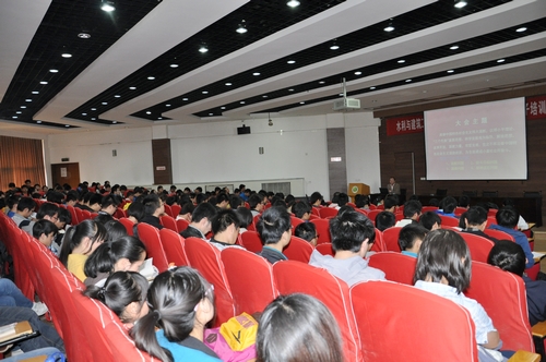 4月7日,水建学院在学院报告厅举行学习党的十八大精神专题辅导报告会。学校党的十八大精神宣讲团成员、宣传部副部长杨耀荣应邀作了学习贯彻党的十八大精神辅导报告,水建学子350余人参加了报告会。报告会由学院党委书记吴继东主持。