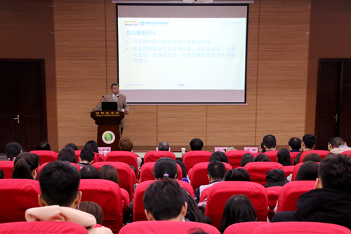 报告会上,刘朗博士就宠物诊疗行业发展的原始期、灾难期、缓慢发展阶段、发展初始阶段、发展的利好时期等多方面进行详细讲述。他指出:“宠物诊疗行业在相对成熟的美国市场中占比例达50%,而中国宠物医疗行业目前仅占20%的份额,由此可见,中国宠物医疗行业存在巨大的发展空间。”随后,刘朗博士为学生剖析了宠物医师的职业特点以及兽医从业人员对职业道德的要求,还表示:“在动物主人面前,宠物医生是绝对的权威。在这种倾斜的关系中,要求宠物医生必须要遵从职业道德操守,拒绝让动物疾病成为掠夺动物主人钱财的“绿色通道”。”最后,刘朗博士对瑞鹏宠物医疗集团的器械、环境、现状等多方面做了详细介绍。