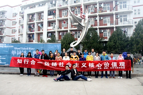 为积极响应党中央号召,弘扬社会主义核心价值观,增强我校同学的政治思想意识。3月22日中午,创新实验学院、植物保护学院、化学与药学院,在我校北校区西区雕塑旁开展以“知行合一,弘扬社会主义核心价值观”为主题的宣传活动。